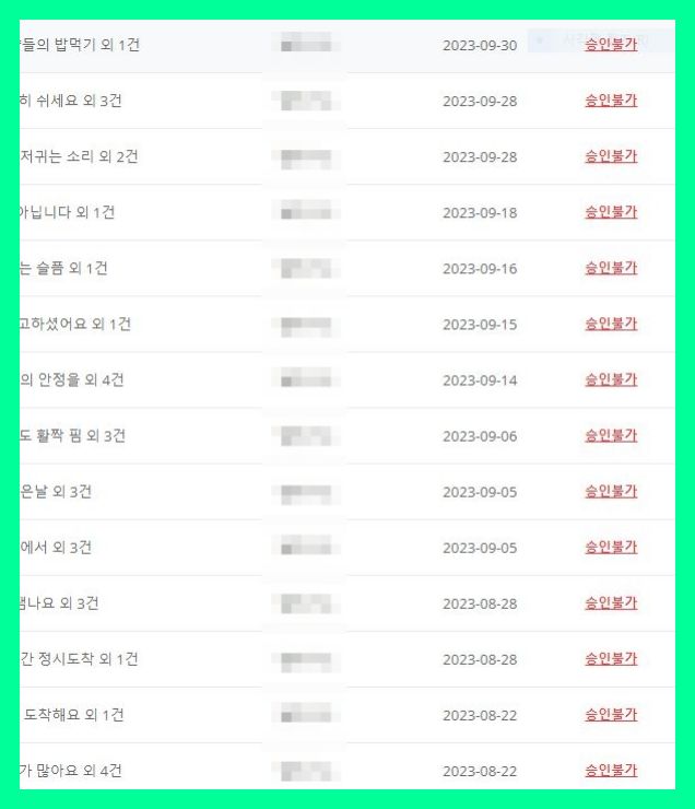 2개 승인 영상: 영상 내 폰트 저작권 증명 못해서 게시 안됨